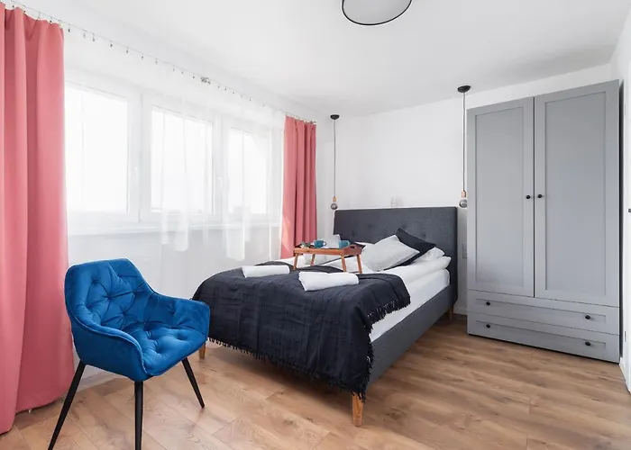 En este alojamiento hay una cocina completa con un horno de microondas, un hervidor eléctrico y utensilios de cocina, además de servicio de tetera/cafetera. La estación de autobuses más cercana, Chopina 02, está a alrededor de 600 metros.